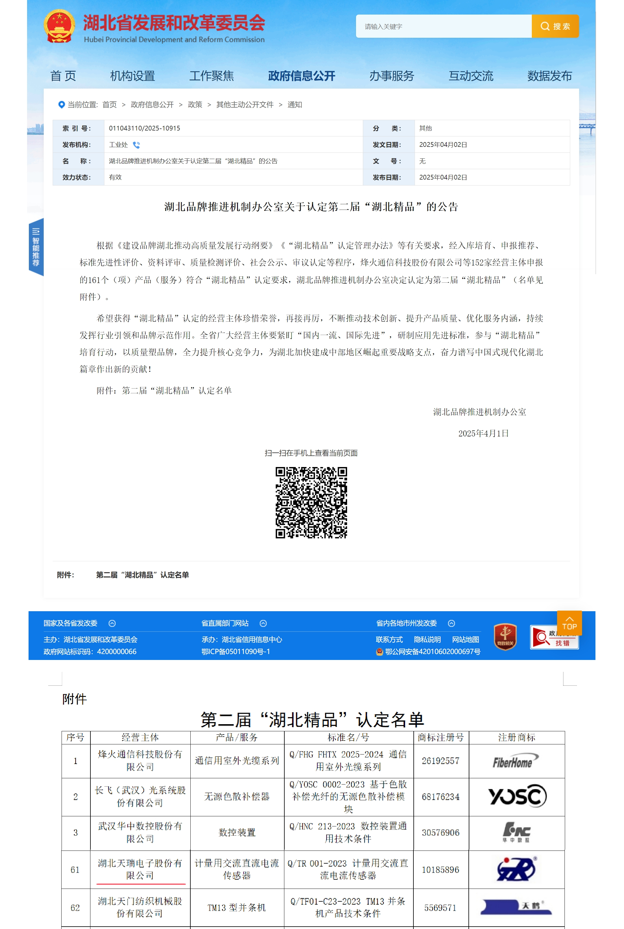2025年4月2日,天门讯——近日,湖北省发展和改革委员会官网发布《湖北品牌推进机制办公室关于认定第二届“湖北精品”的公告》,hth-华体会(中国)官方网站_hth.com (以下简称“hth-华体会(中国)官方网站_hth.com (837601.NQ)”)自主研发的“计量用交流直流电流传感器”凭借其卓越的技术创新性、产品可靠性和市场竞争力,成功入选第二届“湖北精品”名单。这是继公司多项产品获国家级、省级荣誉后,在品牌建设和质量提升领域取得的又一重要突破。