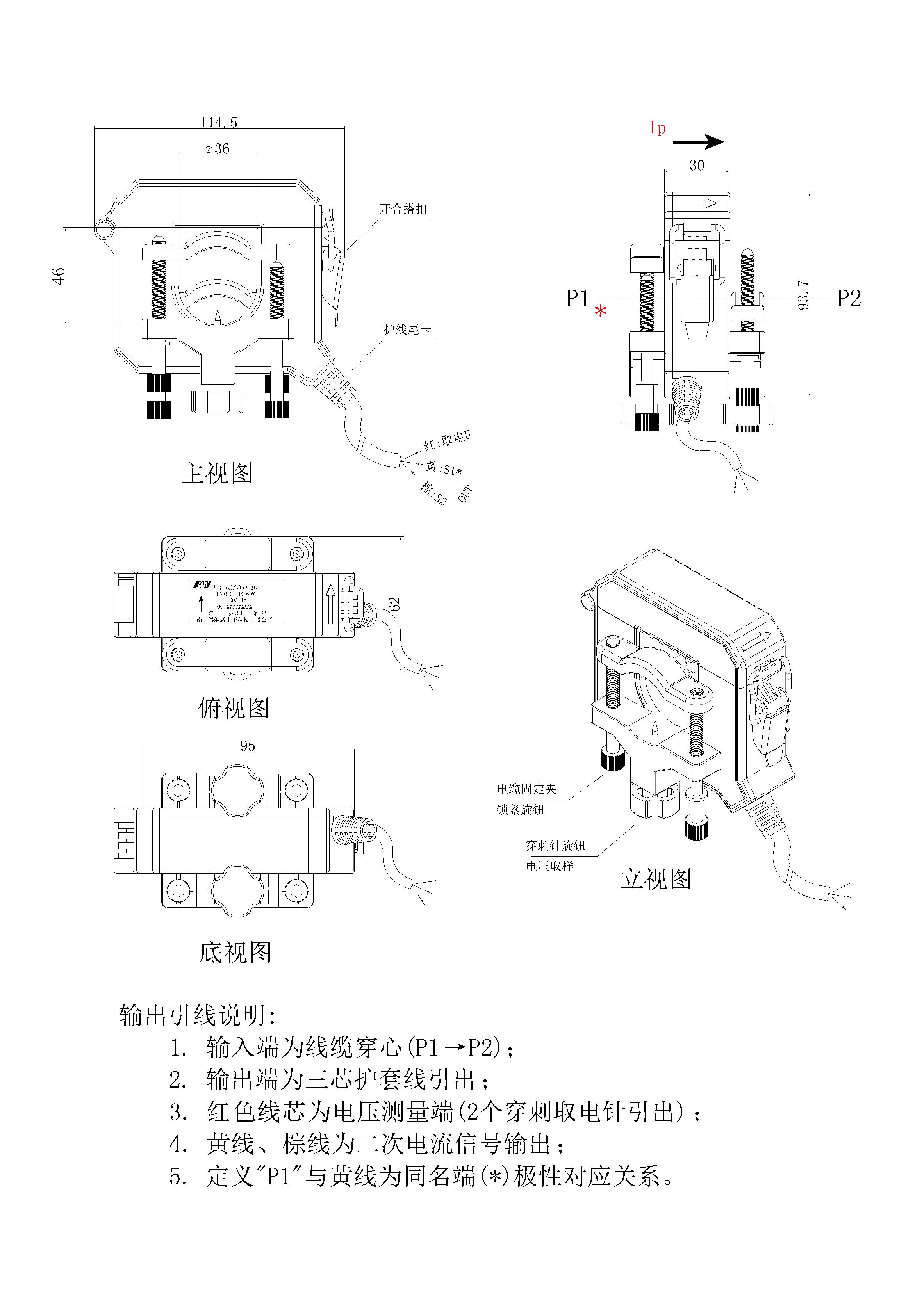 | 电流输出 | 黄线-棕线 | 取电输出 | 红线 | |